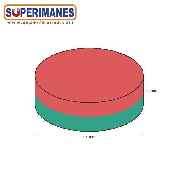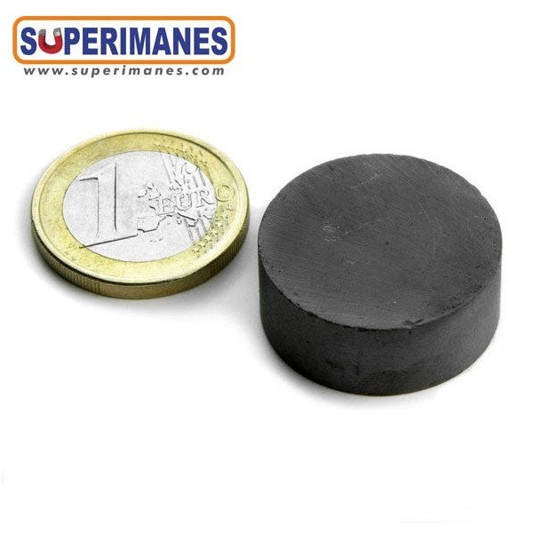 Este imán de ferrita redondo magnético tienen un diámetro de 25 mm y altura 10 mm. Tienen fuerza de sujeción de 1,5 kilogramos aproximadamente. Sin revestimiento. Temperatura máxima de servicio de 250º C. La pieza tiene un peso de 24 gramos.