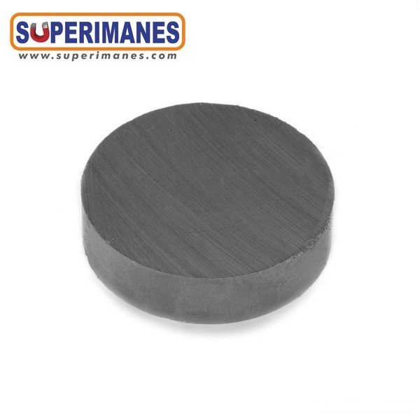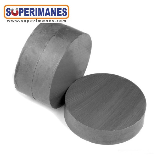 Este imán de ferrita redondo magnético tienen un diámetro de 50 mm y altura 10 mm. Tienen fuerza de sujeción de 3,4 kilogramos aproximadamente. Sin revestimiento. Temperatura máxima de servicio de 250º C. La pieza tiene un peso de 95 gramos.
