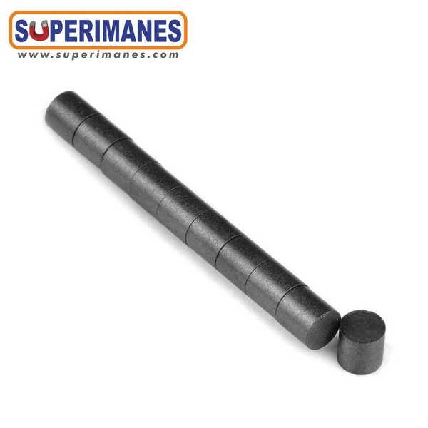 Los imanes de ferrita aguantan altas temperaturas ¡Hasta 250ºC! Los imanes de ferrita son más económicos que los imanes de neodimio pero son menor fuerza que estos. Estos imanes son de color gris/negro. No llevan revestimiento, son ideales para el exterior porque son resistente a la corrosión. Son conocidos también como imanes de cerámica, imanes cerámicos o imanes de estroncio (SrFe). Imanes para espacios pequeños, pero con mucha fuerza. Ideal para pegado en piezas como son imanes de souvenirs. Usado para maquetas, modelismo, cierres, tapas, etc.
