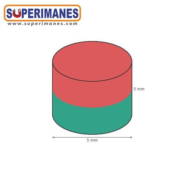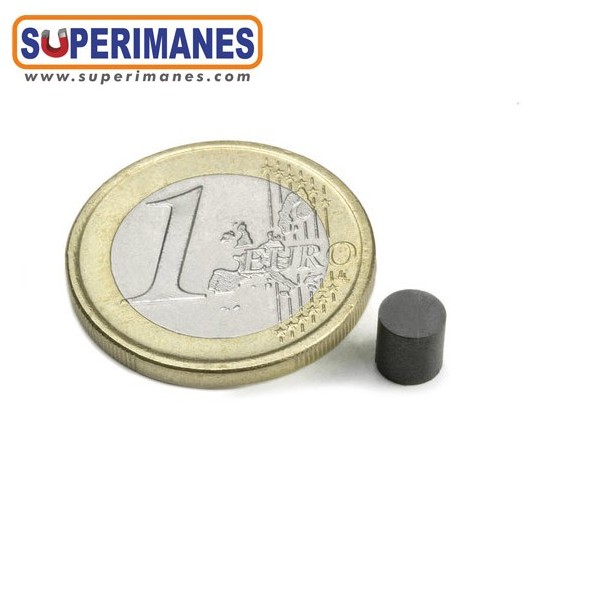 Este imán de ferrita redondo magnético tienen un diámetro de 5 mm y altura 5 mm. Tienen fuerza de sujeción de 100 gramos aproximadamente. Sin revestimiento. Temperatura máxima de servicio de 250º C. La pieza tiene un peso de 0,48 gramos.