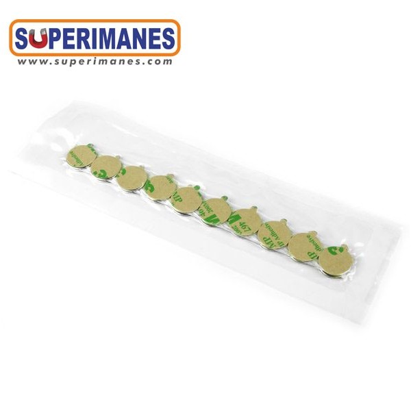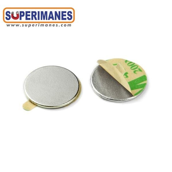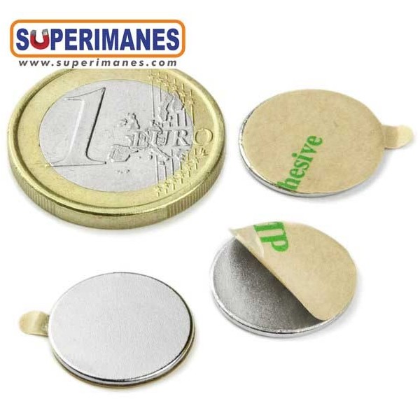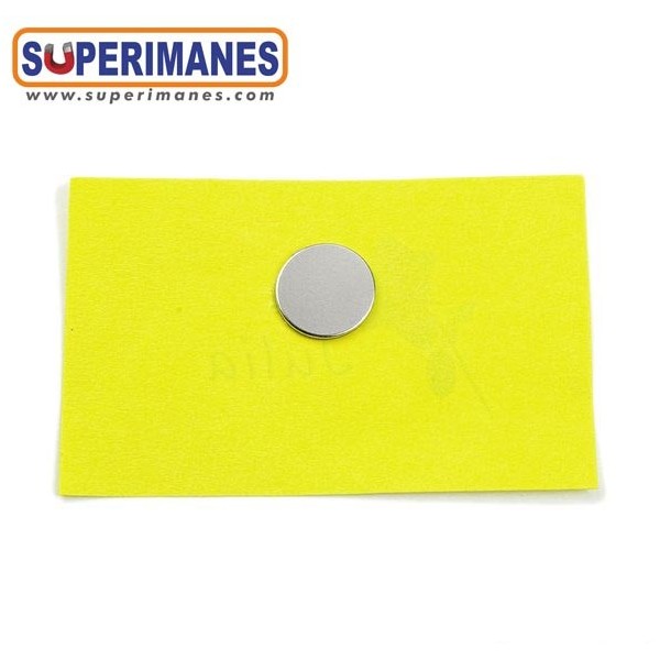 Imanes adhesivos muy planos. Este pequeño imán de neodimio en forma de disco magnético redondo tiene un diámetro de solo 15 mm y altura 1 mm. Tienen fuerza de sujeción de 820 gramos aproximadamente. Imán redondo plano. Magnetizado en N35 axial. Con revestimiento de níquel. Temperatura máxima de servicio de 80º C. La pieza tiene un peso de 1,3 gramos.