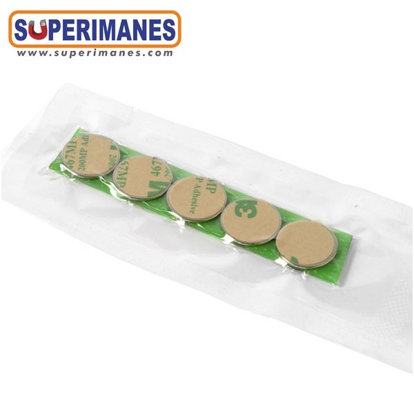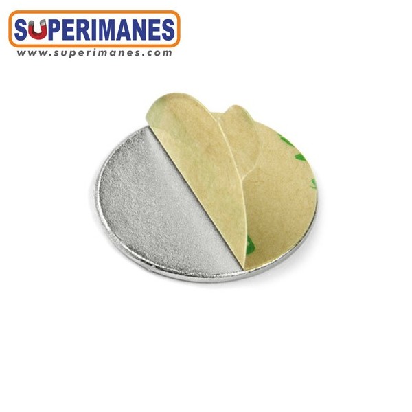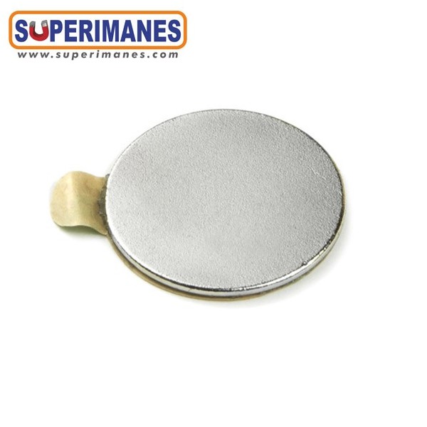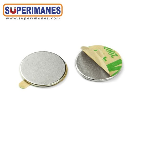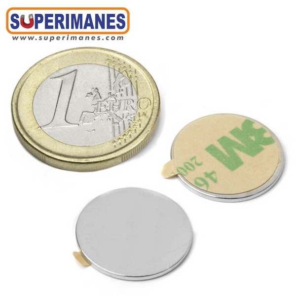 Imanes adhesivos muy planos. Este pequeño imán de neodimio en forma de disco magnético redondo tiene un diámetro de solo 18 mm y altura 1 mm. Tienen fuerza de sujeción de 980 gramos aproximadamente. Imán redondo plano. Magnetizado en N35 axial. Con revestimiento de níquel. Temperatura máxima de servicio de 80º C. La pieza tiene un peso de 1,9 gramo.