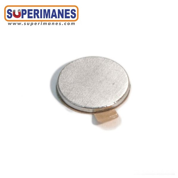 Imanes adhesivos super planos. Este pequeño imán de neodimio en forma de disco magnético redondo es de los más pequeños y estrechos que hay, tiene un diámetro de solo 8 mm y altura 0,75 mm. Tienen fuerza de sujeción de 320 gramos aproximadamente. Imán redondo extraplano. Magnetizado en N35 axial. Con revestimiento de níquel. Temperatura máxima de servicio de 80º C. La pieza tiene un peso de 0,29 gramos.