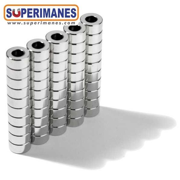Los aros magnéticos no están concebidos para ser atornillados, ya que se pueden romper, para ello, emplee imanes con cabeza avellanada para atornillar o nuestras bases magnéticas avellanadas.