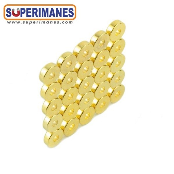 ¡Son dorados! Es un imán muy pequeño, potente y permanente. Estos aros de neodimio tienen gran campo magnético. Los imanes de neodimio son los más fuertes del mundo. Es un imán increíble para un tamaño tan minúsculo. Un imán muy práctico para espacios muy reducidos. Aro magnético con una fuerza de sujeción de 760 g. Son aptos para uso en interiores secos. Muy útil para sujetar o levantar objetos muy pequeños. Usado en maquetas, manualidades, cierres, experimentos, magia, juegos, motores, generador corriente eléctrica, turbinas eólicas, automoción, limpieza magnética, separación magnética, etc. Con aplicaciones en laboratorios, universidades, hogares, oficinas y cualquier otro lugar donde llegue su imaginación.