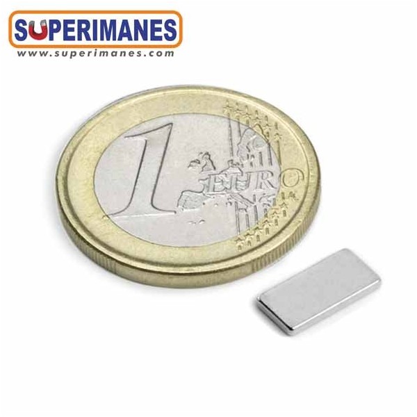 Este imán permanente de neodimio rectangular magnético tiene un largo de 10 mm y ancho de 5 mm y altura 1.2 mm. Tienen fuerza de sujeción de 800 gramos aproximadamente. Imán bloque pequeño. Magnetizado en N50 axial. Con revestimiento de níquel. Temperatura máxima de servicio de 80º C. La pieza tiene un peso de 0,46 gramos.