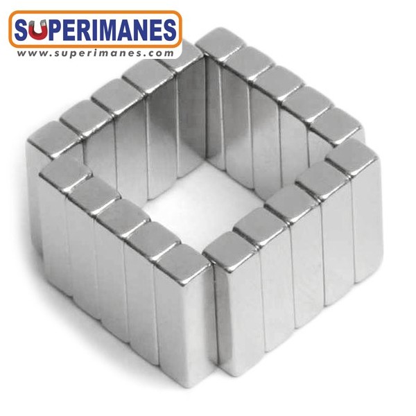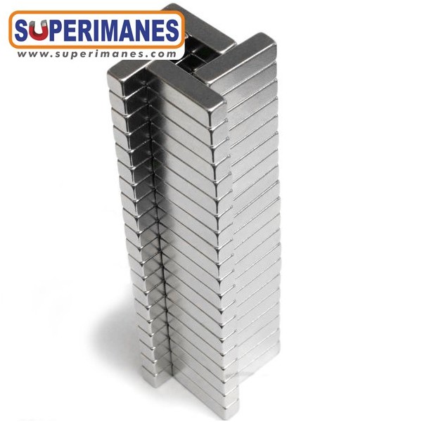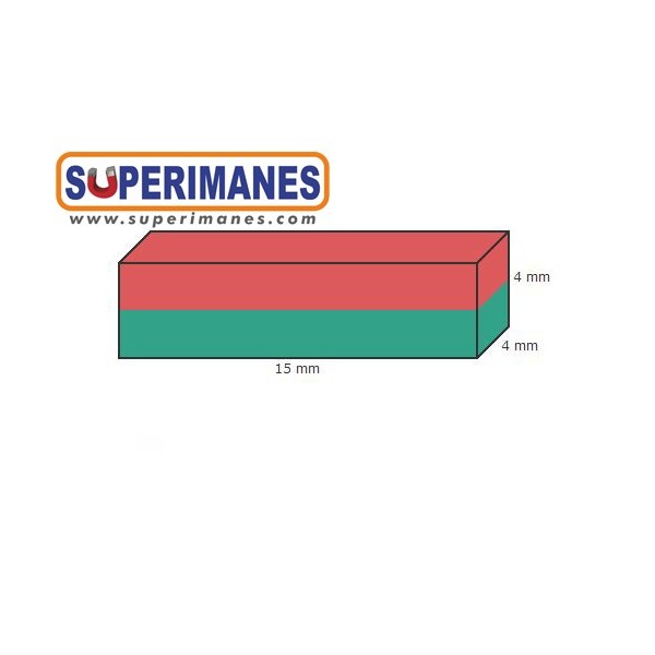 Este imán permanente de neodimio rectangular magnético tiene un largo de 15 mm y ancho de 4 mm y altura 4 mm. Tienen fuerza de sujeción de 1,7 kilogramos aproximadamente. Imán bloque pequeño. Magnetizado en 45M axial. Con revestimiento de níquel. Temperatura máxima de servicio de 100º C. La pieza tiene un peso de 1,8 gramos.