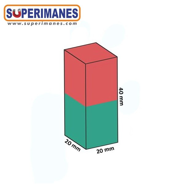 Las mismas dimensiones que el B-40-20-20, pero magnetizado longitudinalmente, o sea que los polos magnéticos se encuentran en las pequeñas superficies frontales (20 x 20 mm). La mayoría de los bloques magnéticos tienen el polo norte y el polo sur en las dos superficies más grandes. Pero este imán es una excepción, en las que la magnetización va a lo largo.