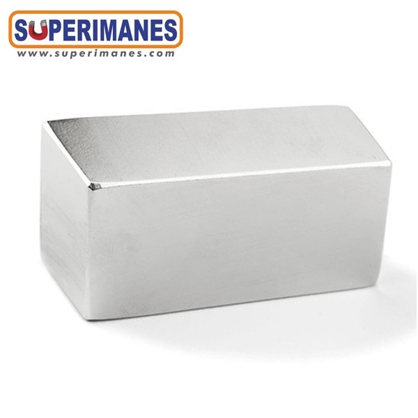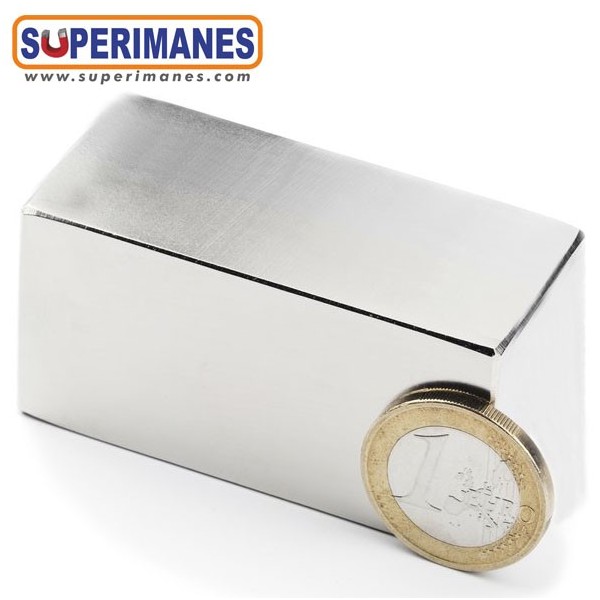 Este imán permanente de neodimio rectangular magnético tiene un largo de 60 mm y ancho de 30 mm y altura 20 mm. Tienen fuerza de sujeción de 135 kilogramos aproximadamente. Imán bloque pequeño. Magnetizado en N50 axial. Con revestimiento de níquel. Temperatura máxima de servicio de 80º C. La pieza tiene un peso de 220 gramos.