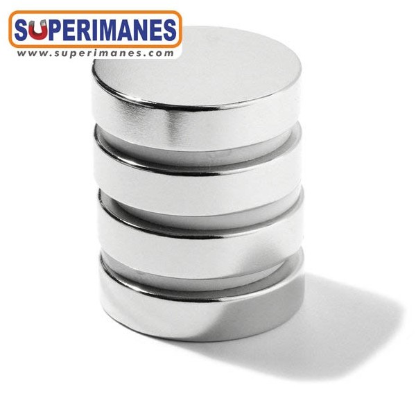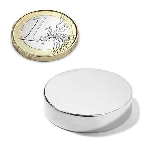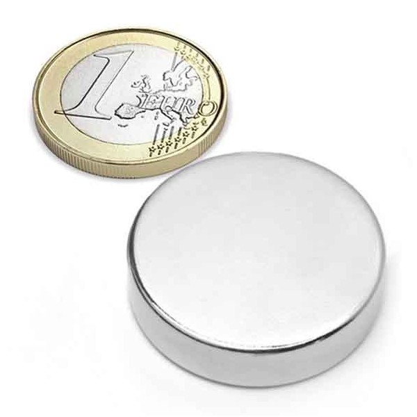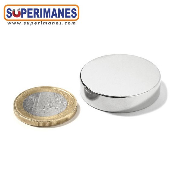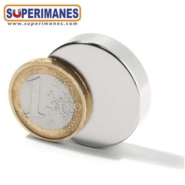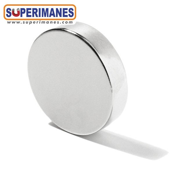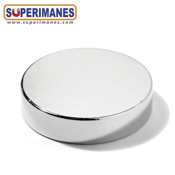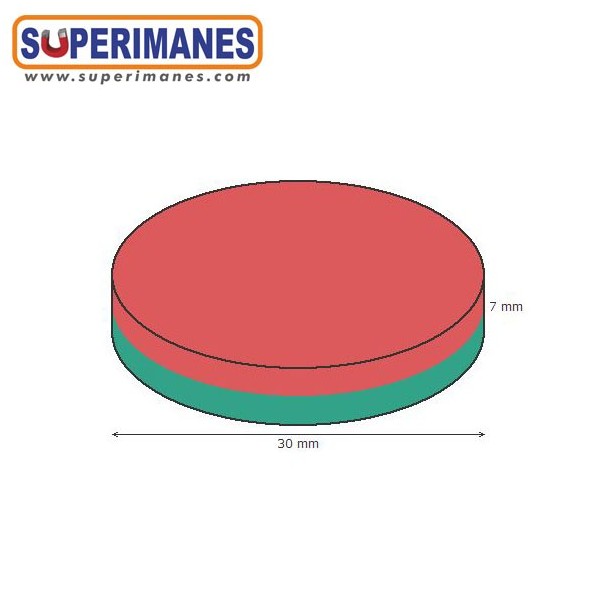 Imanes medianos y fuertes de neodimio en forma de disco magnético redondo, tienen un diámetro de 30 mm y altura de 7 mm. Tienen fuerza de sujeción de 14 kilogramos aproximadamente. Imán redondo muy potente. Magnetizado en N42 axial. Con revestimiento de níquel. Temperatura máxima de servicio de 80º C. La pieza tiene un peso de 38 gramos.