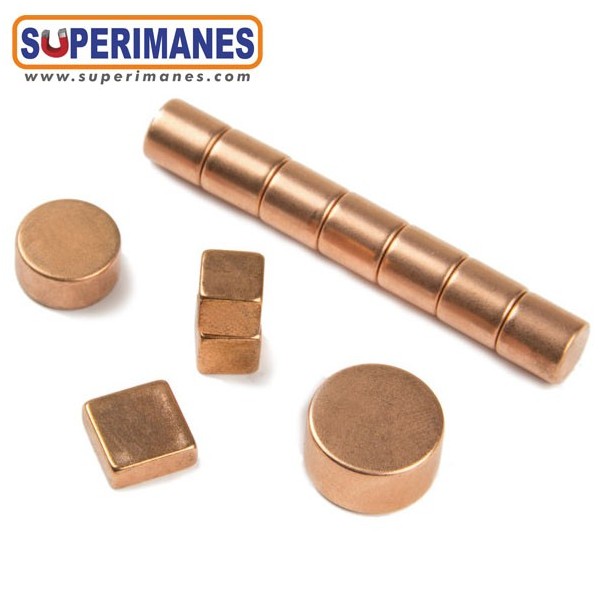 Los imanes cobreados se recomienda sólo para uso decorativo, no para trabajar o jugar con ellos, pues su capa de cobre es más débil que el níquel y puede acabar estropeándose o desgastándose. Debido a la oxidación puede llegar el color del cobre a cambiar con el tiempo o salirles manchas y pueden variar las tonalidades entre marrón, rojo y dorado.