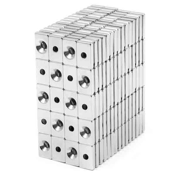 Los imanes de neodimio son frágiles y los imanes con taladros son aún más delicados, pudiendose romper o fragmentarse si reciben golpes continuados. Por ello, recomendamos hundirlos o embutirlos ligeramente para protegerlos. (p. ej., hundir o embutir el imán dentro de la madera en la fabricación de muebles).