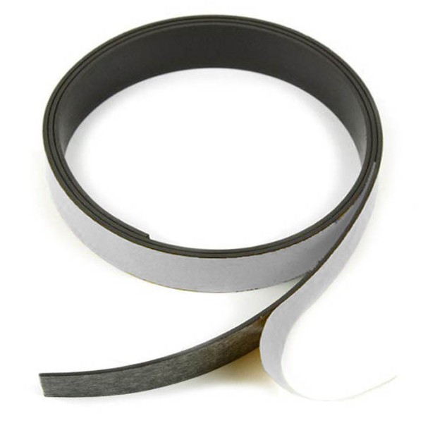 Las cintas magnéticas autoadhesiva sirve para fijar objetos no magnéticos en superficies metálicas. Esta cinta magnética tiene 20 mm de anchura y está disponible en grosor 1,5 mm, se vende por metros sueltos o por rollos de diferentes medidas. Tienen magnetización isotrópica multipolar. Tira adhesiva imantada. Estas tiras magnéticas pueden ser cortadas con tijeras o cúter fácilmente. Aptos para realizar manualidades con ellos, muy apropiado para hacer figuras magnéticas. Usados por centros educativos, oficinas y hogares.