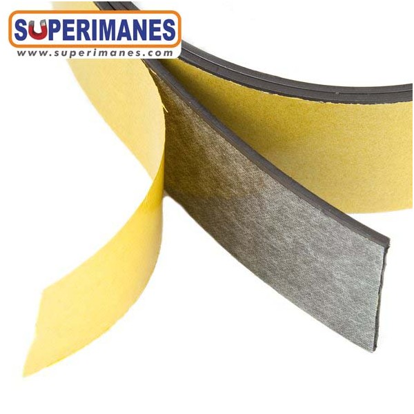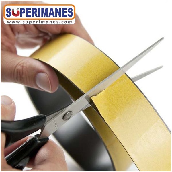 Las cintas magnéticas autoadhesiva sirve para fijar objetos no magnéticos en superficies metálicas. Esta cinta magnética tiene 50 mm de anchura y está disponible en grosor de 1.5 mm, se vende por metros sueltos o por rollos. Tienen magnetización anisotrópica. Tira adhesiva imantada. Estas tiras magnéticas pueden ser cortadas con tijeras o cúter fácilmente. Aptos para realizar manualidades con ellos, muy apropiado para hacer figuras magnéticas. Usados por centros educativos, oficinas y hogares.