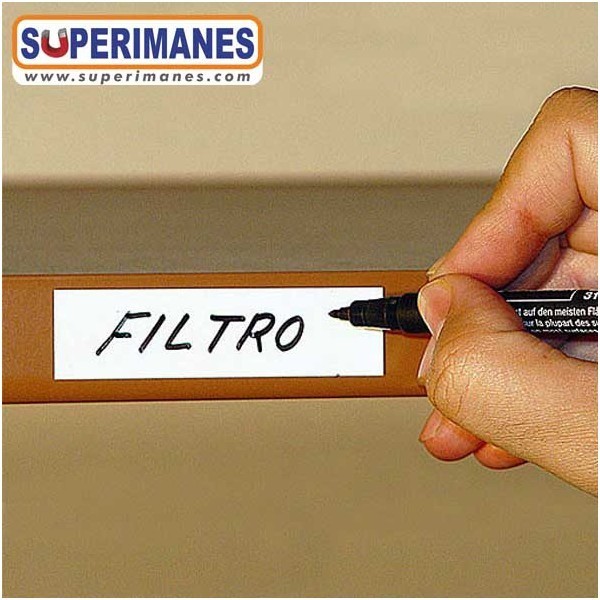 Nuestras tiras magnéticas se compone de ferrita de estroncio y delante a una cara una capa de pvc blanco. Usado para recortar y colocar en zonas metálicas que queramos etiquetar. Ideal para almacenes, tiendas, hogares.