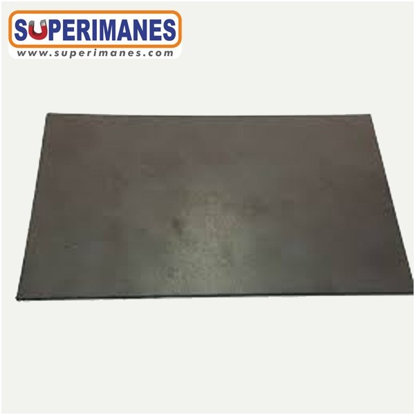 Los imanes flexibles en planchas tienen un ancho de 42 cm y un largo de 50 cms. También disponible en largo de 1 metro. Esta placa magnética tiene un grosor de 4 mm. Estos imanes tienen magnetización a una cara. Su material es plastoferrita y son de color negro-gris. Magnetización anisotrópica. Sin revestimiento. Temperatura de servicio entre -20 ºC a 85 ºC. La pieza tiene un peso de 3135 gramos.