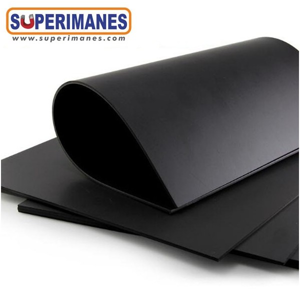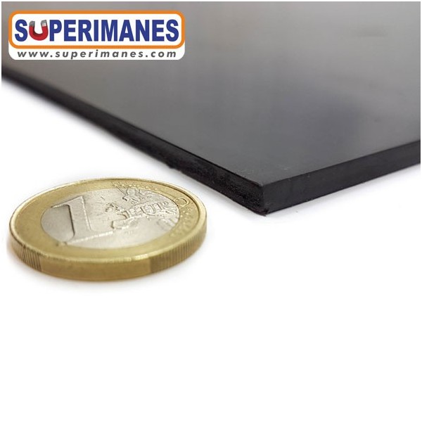 Los imanes flexibles en planchas tienen un ancho de 44,9 cm y un largo de 68,7 cms. También disponible en largo de 120 centímetros. Esta placa magnética tiene un grosor de 4 mm. Estos imanes tienen magnetización a una cara. Su material es plastoferrita y son de color negro-gris. Magnetización anisotrópica. Sin revestimiento. Temperatura de servicio entre -20 ºC a 85 ºC. La pieza tiene un peso de 3950 gramos.