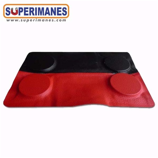 En Superimanes forramos los par biomagnéticos de ferrita en color rojo y negro para diferenciarlos de los par biomagnéticos de neodimio que forramos en color azul y negro. Por solicitud del cliente podemos forrar los imanes en otros colores o dispocisiones.