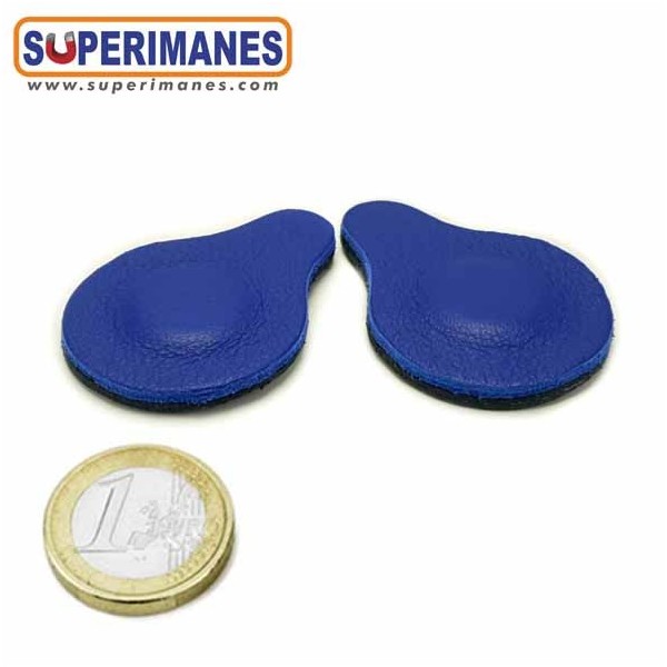 Par Biomagnético - Set de 2 imanes de neodimio de 2500 gauss en forma de discos redondos de tamaño 15 de diámetro y altura de 3 mm, con grado de magnetización N45, con fuerza de sujeción de 3,2 kilos aproximadamente. Dichos imanes están forrados en cuero natural 100% vacuno. Uso en magnoterapias o magnetoterapias.