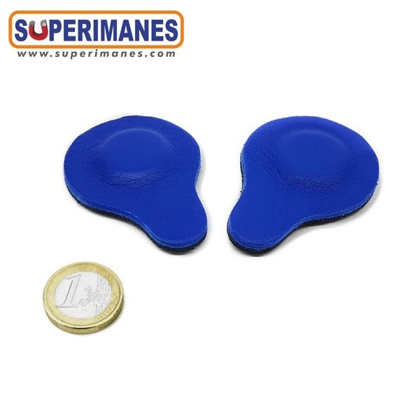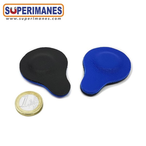 Par Biomagnético - Set de 2 imanes de neodimio de 5500 gauss en forma de discos redondos de tamaño 25 de diámetro y altura de 5 mm, con grado de magnetización N42, con fuerza de sujeción de 8,3 kilos aproximadamente. Dichos imanes están forrados en cuero natural 100% vacuno. Uso en magnoterapias o magnetoterapias.
