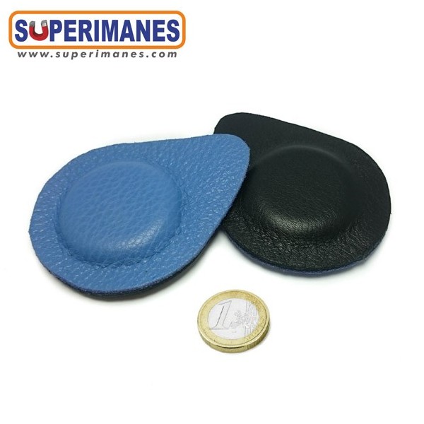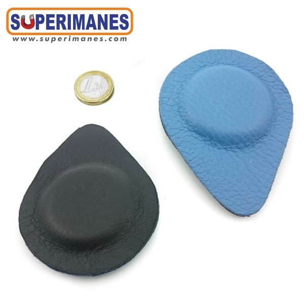 Par Biomagnético - Set de 2 imanes de neodimio de 6.000 gauss en forma de discos redondos de tamaño 35 mm de diámetro y altura de 5 mm, con grado de magnetización N42, con fuerza de sujeción de 12 kilos aproximadamente. Dichos imanes están forrados en cuero natural 100% vacuno. Uso en magnoterapias o magnetoterapias.