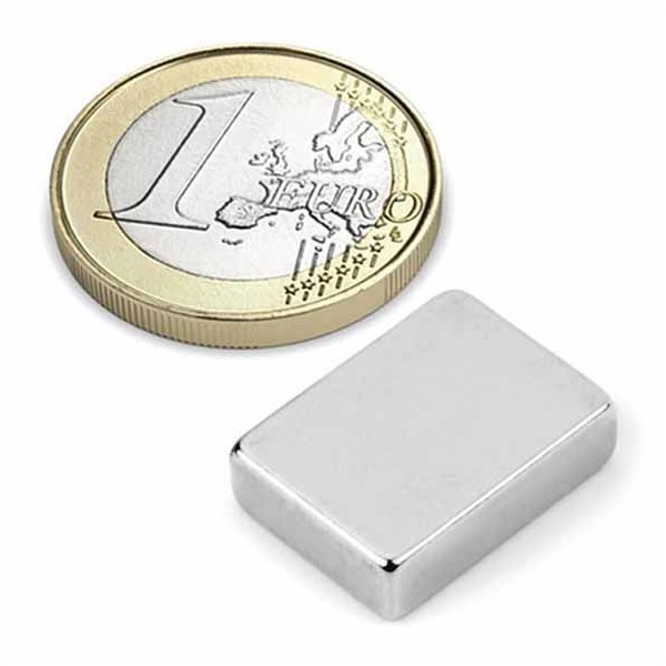 Este imán de samario en forma rectangular tiene una longitud de 16,5 mm, ancho de 13 mm y altura 5 mm. Bloque magnético con fuerza de sujeción de 2,52 kg aproximadamente. Imán bloque mediano. Magnetizado en S280 axial. Con revestimiento de níquel. Temperatura máxima de servicio de 300º C. La pieza tiene un peso de 7,12 gramos.