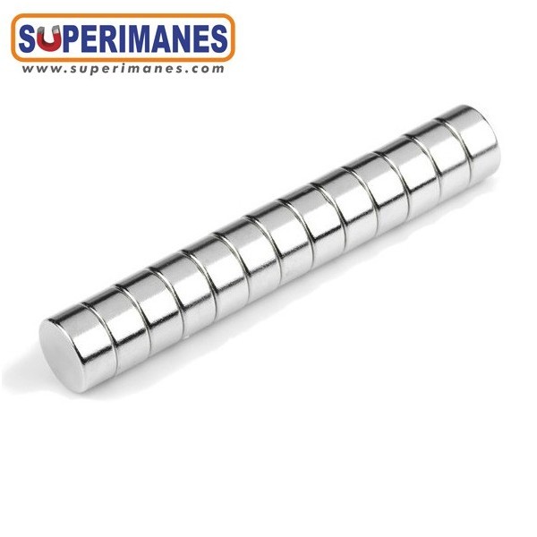 Imanes pequeños y fuertes de samario en forma de disco magnético redondo, tienen un diámetro de 10 mm y altura de 5 mm. Tienen fuerza de sujeción de 1,8 kilogramos aproximadamente. Imán redondo de samario potente. Magnetizado en axial. Sin recubrimiento o revestimiento. Temperatura máxima de servicio de 300º C. La pieza tiene un peso de 3,34 gramos.