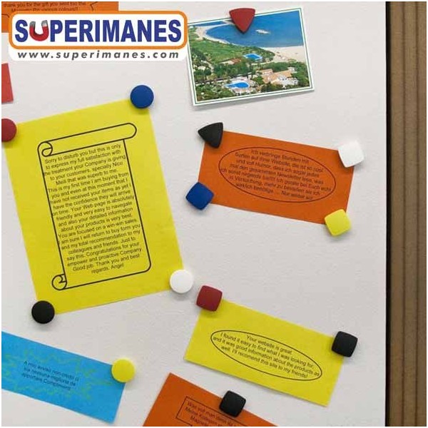 Aptos para usar en pizarras magnéticas, planificadores, gráficos, pared metálica, frigorífico o nevera. Usados por entrenadores deportivos, restaurantes, bares, oficinas y hogares. Ideales para sitios donde quiera dar colorido y originalidad. Estos imanes son más fuertes que los imanes típidos de pizarra gracias a fabricación en neodimio. Usados cuando se queda corto de fuerza el imán habitual de pizarra.