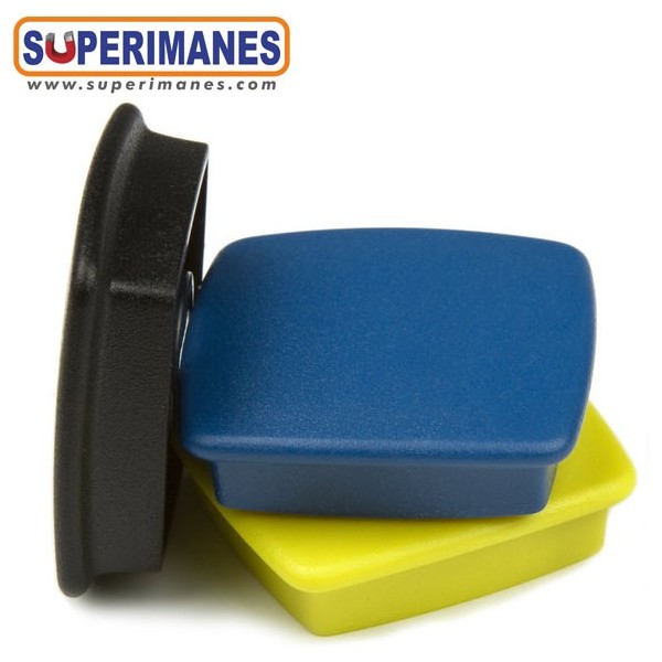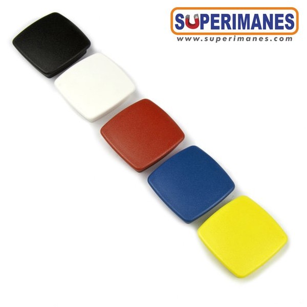 Imanes cuadrados para pizarras magnéticas, con imán de neodimio en su interior y carcasa de plástico en colores de forma cuadrada. Ideal para aguantar notas, fotos y otros documentos en pizarras, frigoríficos, tableros o paredes metálicas. ¡Cuadrados!. Fuerza de 1,5 kg. aproximadamente. Magnetización axial. Gran surtido de colores. Carcasa de plástico ABS resistente a la luz. Set de 25 imanes por paquete.
