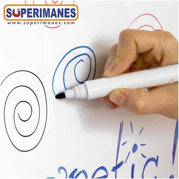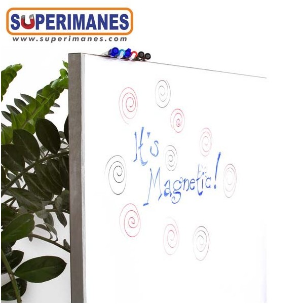 ¡Es un imán! En esta pizarra blanca no es recomendable pegar imanes en ella. Para ello, puede ver nuestra gama de planchas magnéticas o nuestra gama de láminas férricas. En esta pizarra los imanes de ferrita no se adhieren con la fuerza suficiente en ella. Por ello, si necesita usar imanes tendrá que ser de neodimio y mayores de 15x2mm para que tengan fuerza. El uso prolongado de imanes en este tipo de pizarra puede llegar a perjudicar las propiedades magnéticas de la misma.