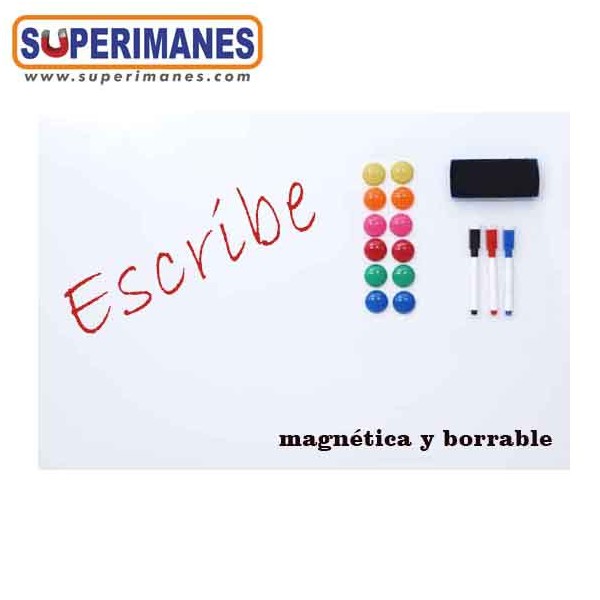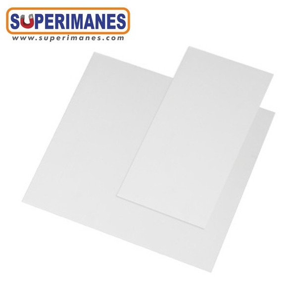 Se trata de una plancha metálica galvanizada con acabado pizarra blanca borrable. Apta para usar con toda nuestra gama de imanes. Lleva un vinilo acabado pizarra blanca que hace que la pizarra pueda ser utilizada con rotuladores borrables para pizarra blanca. Diversos tamaños y grosor del metal de 0,8 mm. Peso 6,40 kg/m².