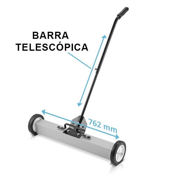 ¡Muy largo! Imán para espacios grandes donde necesite recoger residuos metálicos. Muy usado en almacenes, garajes, estancias de gran superficie. Fuerte atracción y casi sin esfuerzo. Área de trabajo de 762 mm y fuerza magnética de 20 kg. Podrá barrer magnéticamente una amplia zona en poco tiempo. Fácil liberación de las partículas recogidas. Con mango de goma ergonómico y barra telescópica. Resistente e ideal para uso profesional en industria, comercios, talleres, etc.