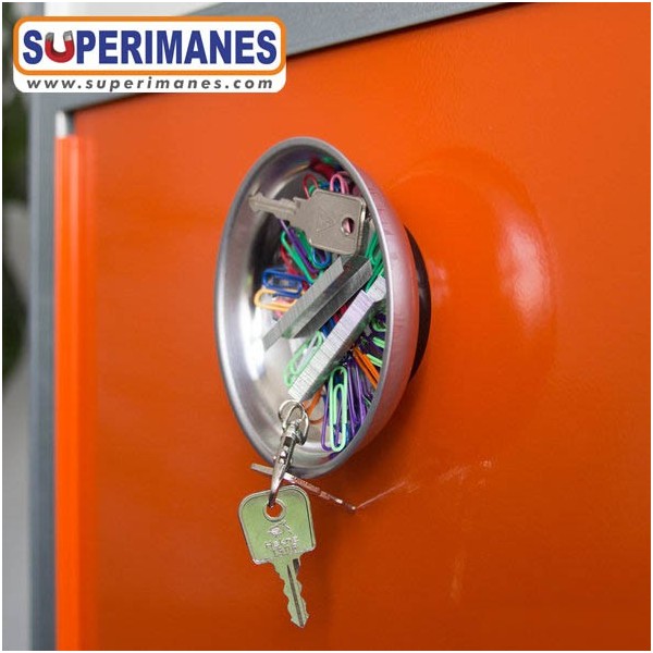 ¡Olvídese por fin de andar buscando clips y tornillos! En esta fuente magnética pequeña de acero cromado podrá guardar de manera segura y elegante estas pequeñas piezas metálicas.