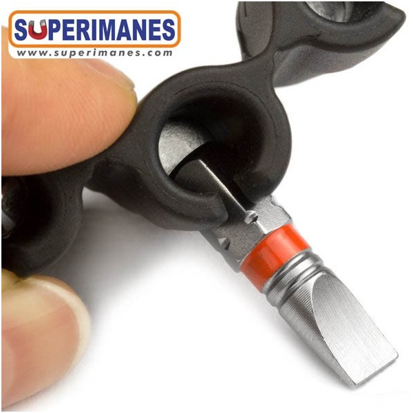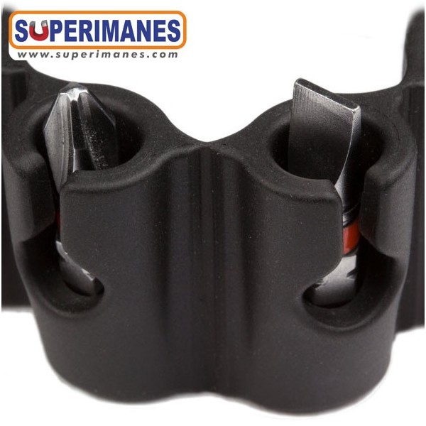 Esta muñequera es un soporte magnético para intercambiar puntas de destornillador rápidamente. El sistema magnético de neodimio es ideal para colocar, manejar y retirar las puntas con una mano o incluso con guantes de trabajo. En cada muñequera se pueden guardar 6 puntas de destornillador estándar con una longitud universal de 25 mm.