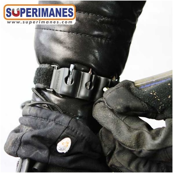 Se ciñe fácilmente al antebrazo. La robusta correa con velcro se puede colocar por encima de la manga de una chaqueta de trabajo gruesa, ya que es regulable debido a su gran diámetro.