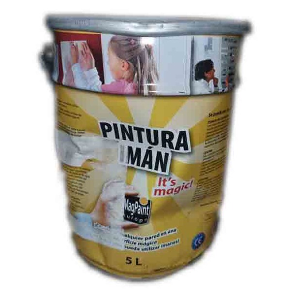 La PINTURA IMÁN, gracias a su fórmula férrica sirve para sujetar objetos imantados en la pared, convirtiendo ésta en un tablón para guardar notas, jugar o cualquier otra actividad. Pintura de 5 litro. Peso 14 kg. Color gris oscuro. Rendimiento óptimo 3 capas.