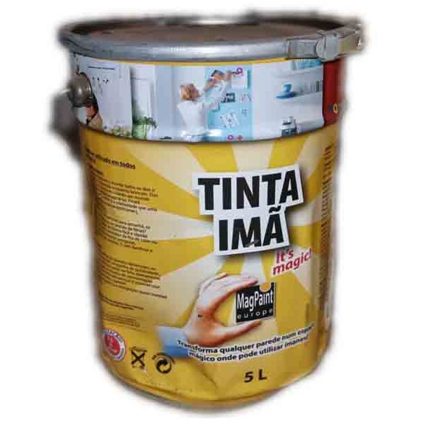 Pintura Imán es una pintura de pared gris oscura en base agua para uso en interior. Como Pintura Imán contiene un aglutinante con rellenos, pigmento (ferromagnéticos) y aditivos. La superficie que pintemos con esta pintura atraerá a los imanes (neodimio).